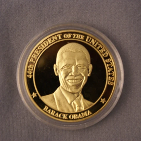 56th Presidential Inauguration Commemorative Coin. Own a piece of history with this commemorative coin marking the occasion of the inauguration of our 44th President, Barack H. Obama. This gold-colored coin is the size of a silver dollar but much thicker.