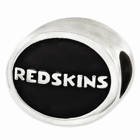 Sterling Silver Enameled Washington Redskins NFL Bead: In length of 10 mm and width of 11 mm, sterling silver bead is reversible. It has purity of 925 and opening diameter of 3 mm. Solid bead is Silver/White in color.