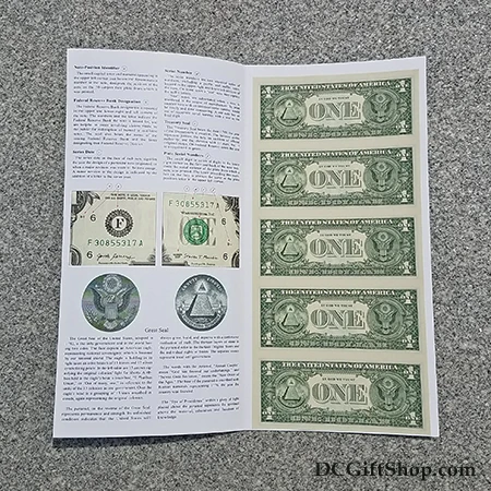 This is the Official Bureau of Engraving and Printing One Dollar Notes. An Informational packet comes with the currency.